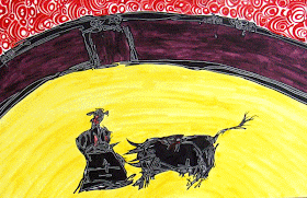 Posteriormente pasa a un instrumento más cotidiano y al que más habituado está desde el colegio: el bolígrafo (Bic azul, rojo, negro).